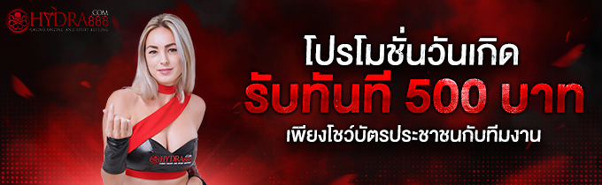 เมื่อถึงวันเกิดของท่าน เพียงแค่ท่านโชว์บัตรประชาชนให้ทีมงานรับทันทีเครดิต 500 บาท (สามารถถอนเงินได้ทันที) *ท่านต้องมียอดฝากเงินและยอดได้เสีย รวมเกิน 1000 บาท ถึงจะรับโปรนี้ได้